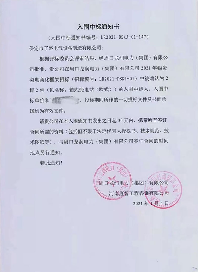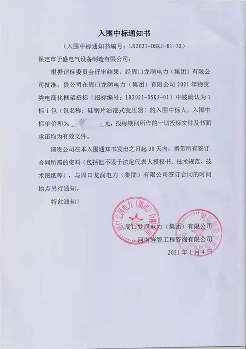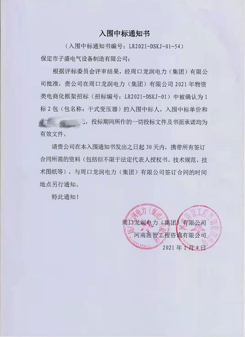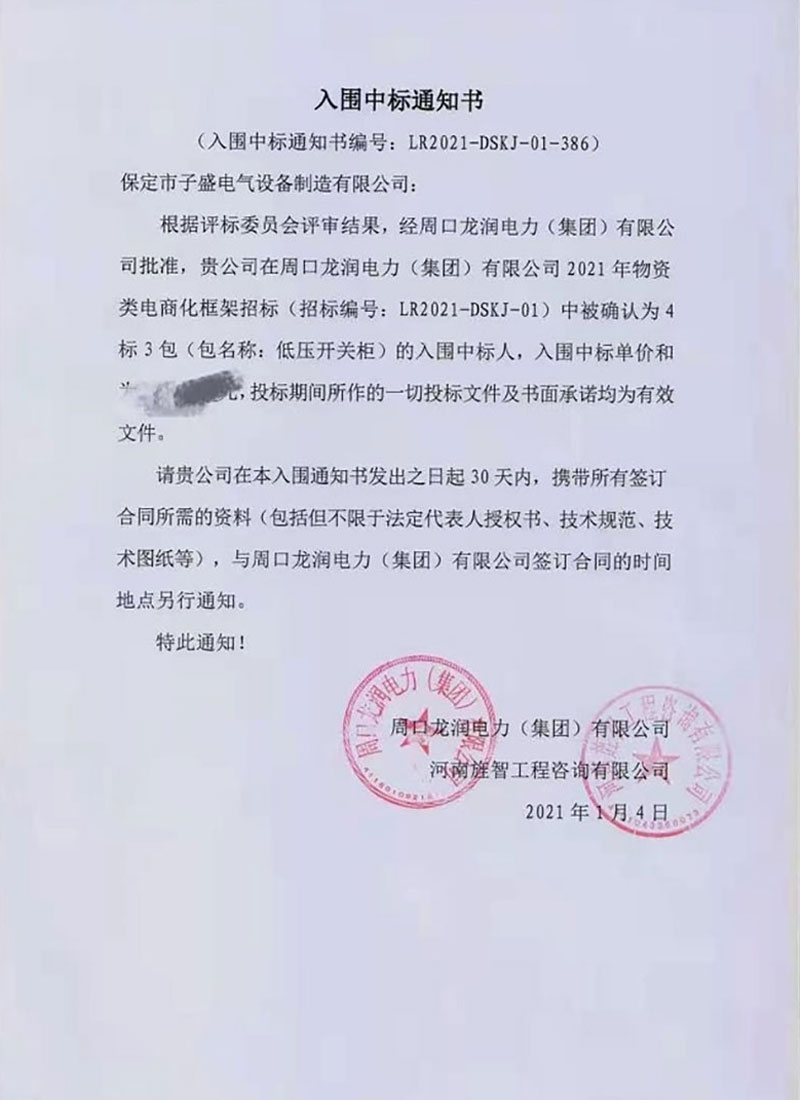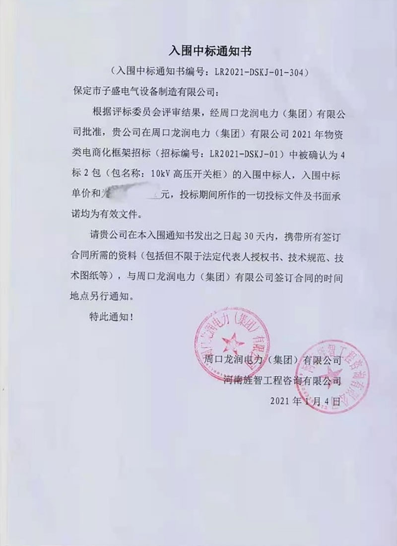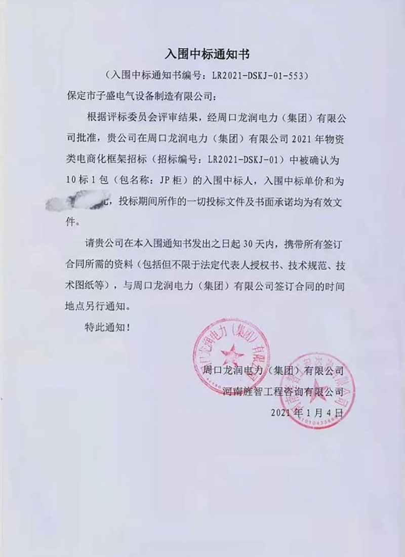 周口龙润电力(集团)有限公司入围中标